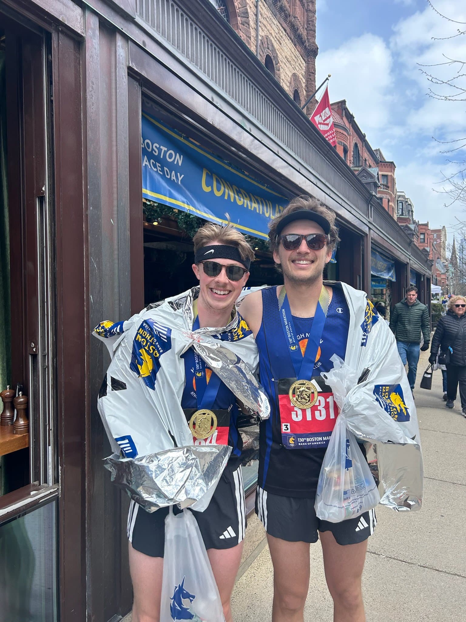 Yesterday, (at least) seven FLRC runners (and several more alumni) ran the Boston Marathon under excellent conditions. A frosty morning made way to excellent marathoning conditions with full sun and temperatures in the mid 40s at the start; clouds filled in as temperatures rose into the 50s as the race progressed, with a gentle tailwind pushing runners along the entire way. First to the finish was the elite field with John Korir (2:01:52) setting a course record and Zouhair Talbi (2:03:45, 5th) and Jessica McClain (2:20:49, 5th) setting American course records.