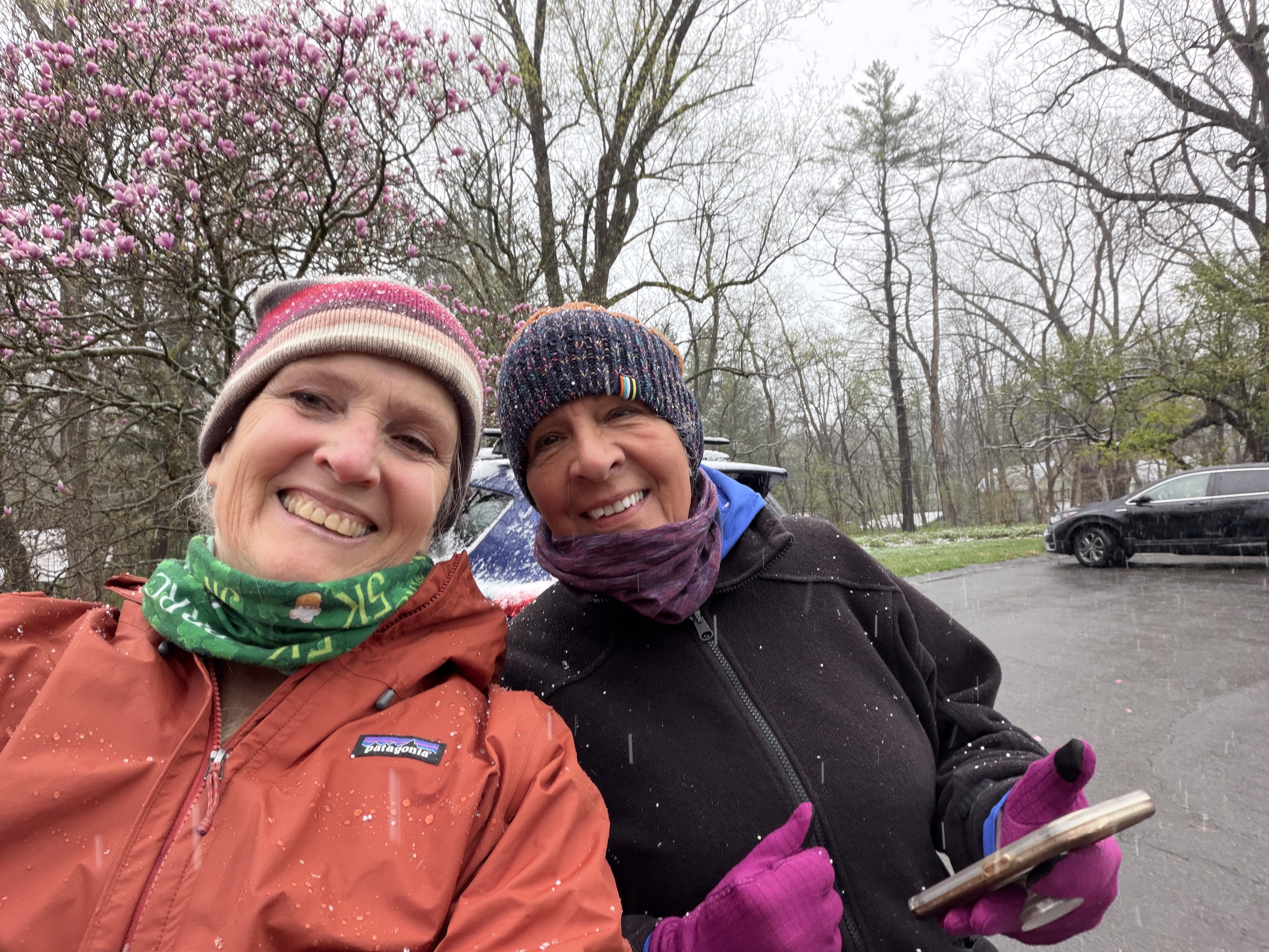 The temperature may have dropped 40 degrees overnight, and the snow may have been falling amidst the flowers of the Arboretum, but a hardy crew of runners still met to kick off the 2026 Challenge in style.