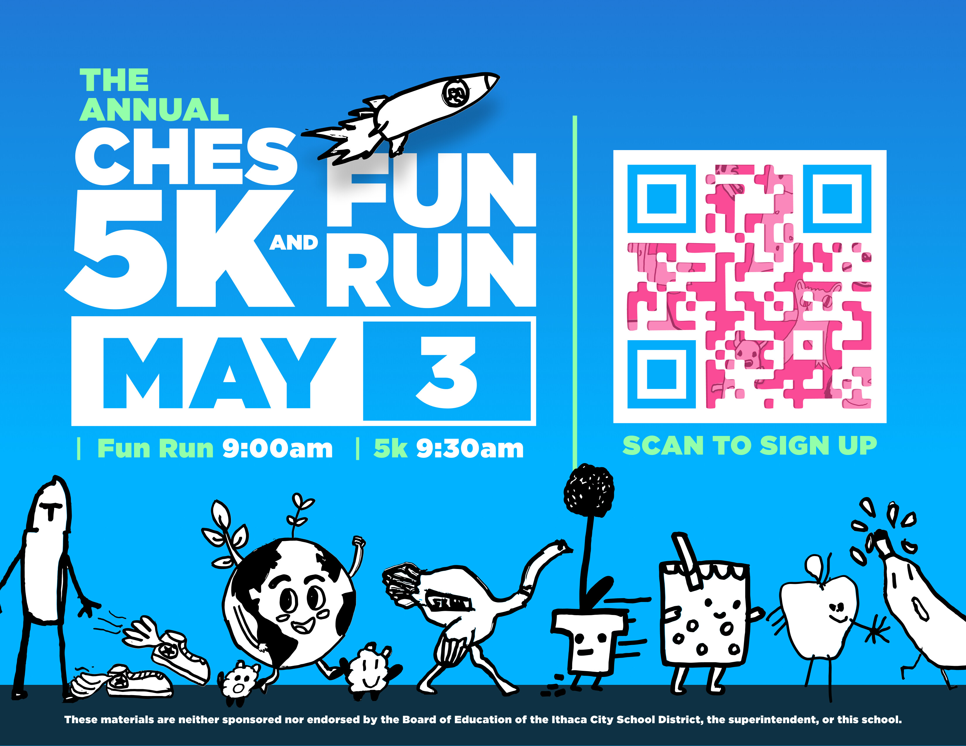 The annual Cayuga Heights Elementary School (CHES) 5K and Fun Run is coming up on Sunday, May 3rd! This fun community event is open to everyone who would like to race through the beautiful streets of Cayuga Heights on a spring day.