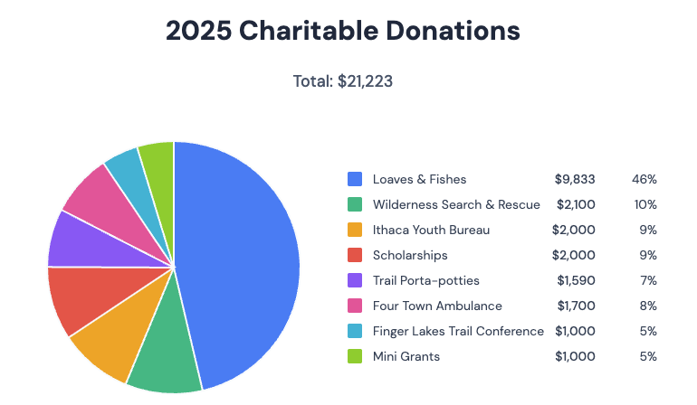 - $1,000 for the Finger Lakes Trail Conference (Finger Lakes Trail maintainers)