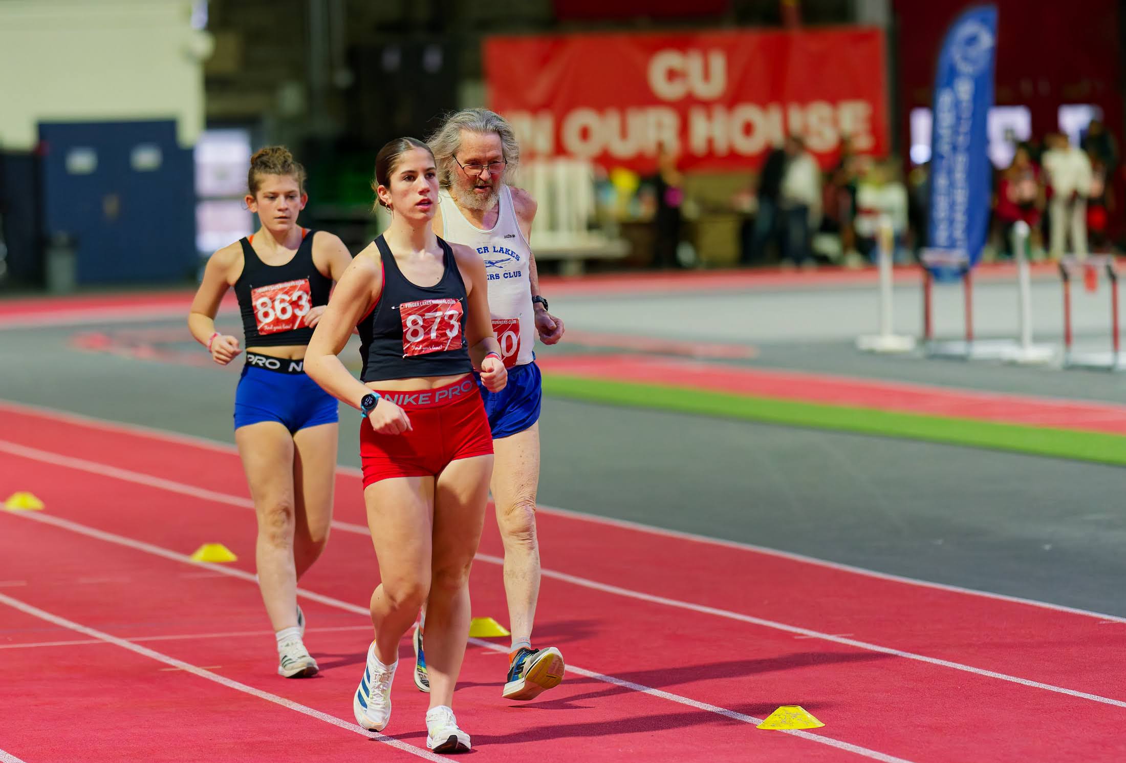 The Mustangs Track Club’s Siyel Bowman flew to victory in the 200m with a 23.35 showing. Nicolo Christian grabbed second in 23.48 for his second top-three sprint finish of the day, while the Mustangs’ Thando Shezi—also doubling back from a podium finish in the 60m—rounded out the top three men in 24.33. Odessa-Montour’s Janne Anderson, just 14 years old, led the women with a 29.39 clocking. The Groton Project’s Karson Mackey claimed her second top-three sprint of the day with a 30.45, and Troy Track & Field’s Harper Lee, also 14, secured third in 31.72.