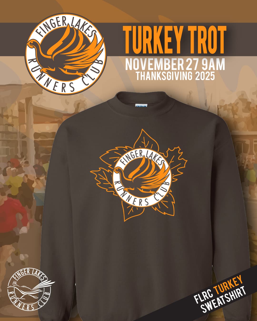 Turkey Trot sweatshirts are available by pre-order (register today to reserve your size) and for sale at the event. More info about the Turkey Trot is on the club website.