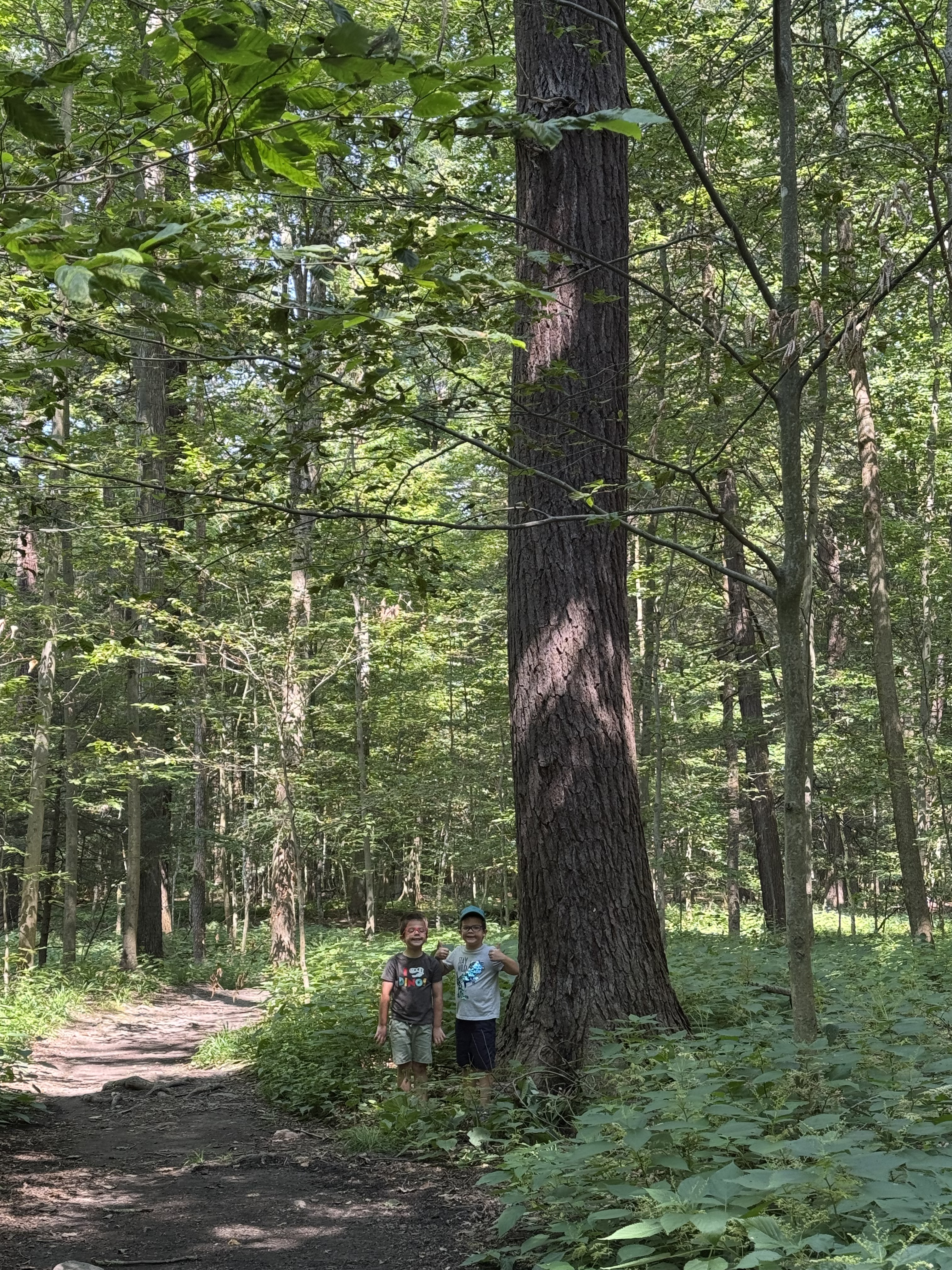 (I forgot to post this on Saturday so no gold star.) The kids and I did a run/hike on the first of their three courses for their personal Challenge. Joel seems to be a natural trail runner, stepping over rocks and roots with ease on the flat parts and power hiking efficiently on the steeper hills. Here’s a picture of “the tallest tree in the world”.