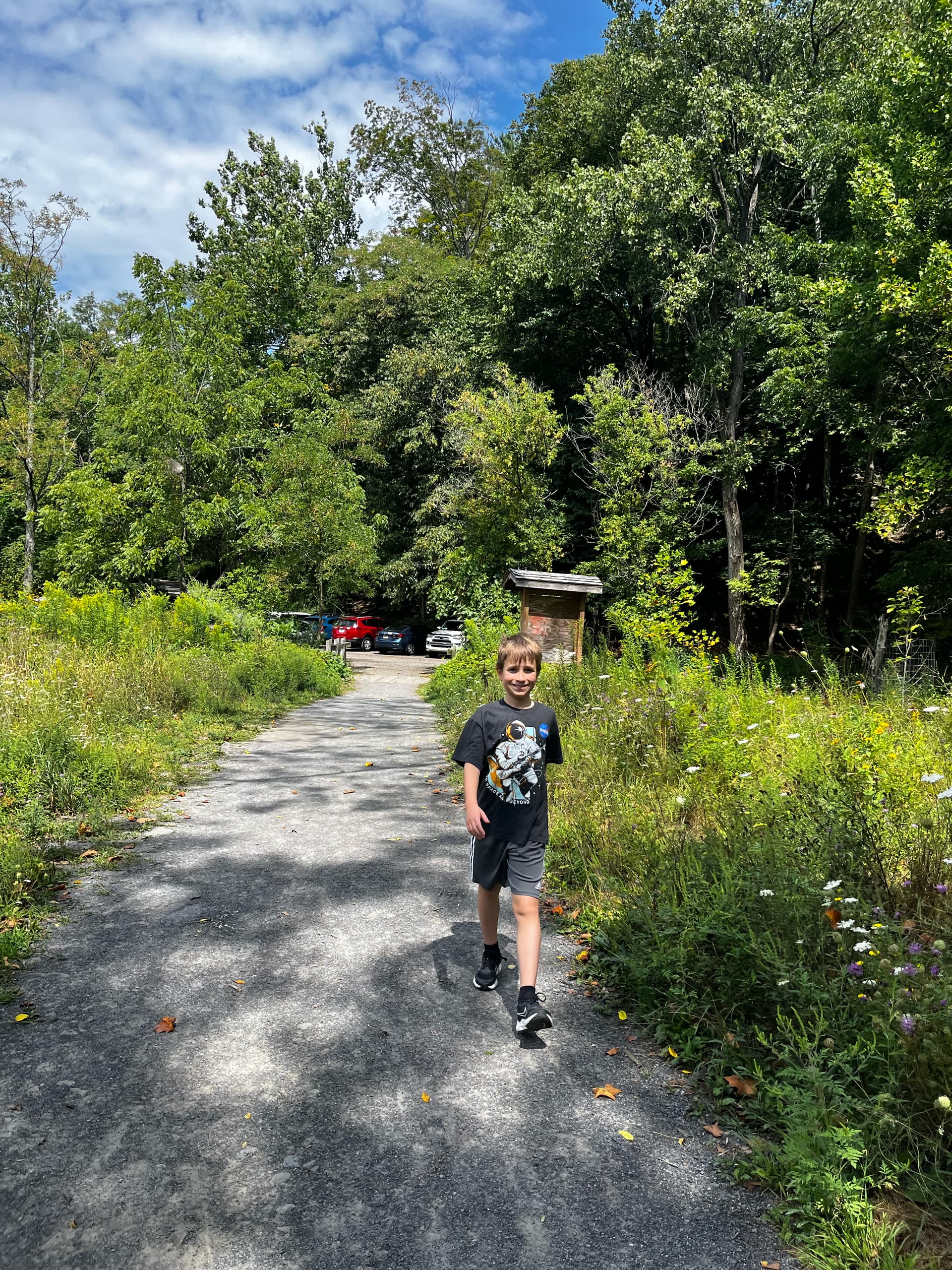 I am always trying to build up a cushion for ‘most runs’ on this course, but somehow that cushion always disappears. Today I promised Simon a Dunkin’ stop (Boston Cream) if he joined me for a hike on these trails. He enthusiastically agreed … and probably would have hiked even without the donut.