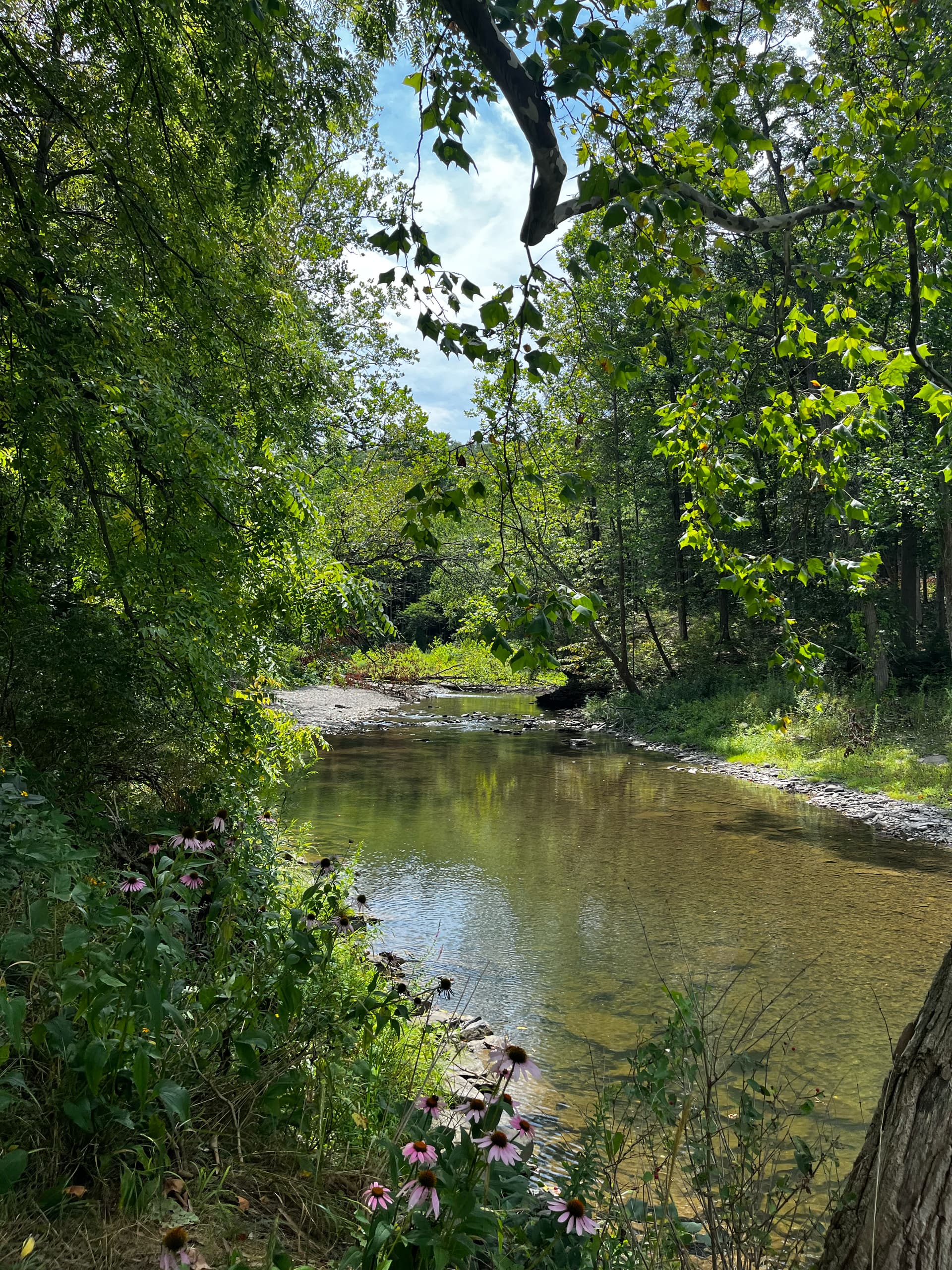 College students are back with a vengeance, and the parking lot was FULL on this sunny Saturday. Students were playing car Tetris, trying to squeeze into dubious spaces. The creek was as photogenic as usual, but there were no ‘Waterfalls’ to admire today.