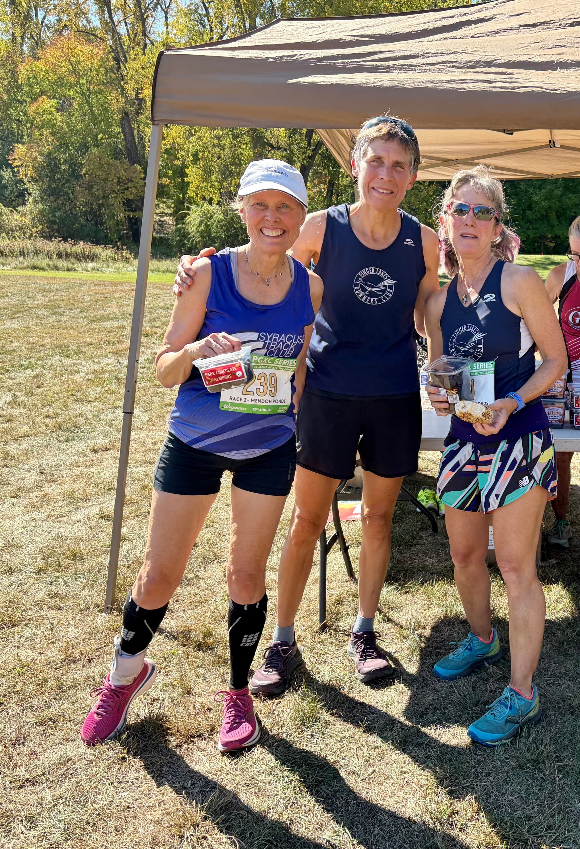 Our Women’s Vets team win was essentially unopposed—our A team beat our B team, with Julie Barclay, Kim Jackson, and Sandy Gregorich taking 1-2-3 for the A team and Gill Haines-Sharp, Tonya Engst, and Janet Murphy taking 4-5-6 for second place. That gets us 10 Club Cup points in just one category.