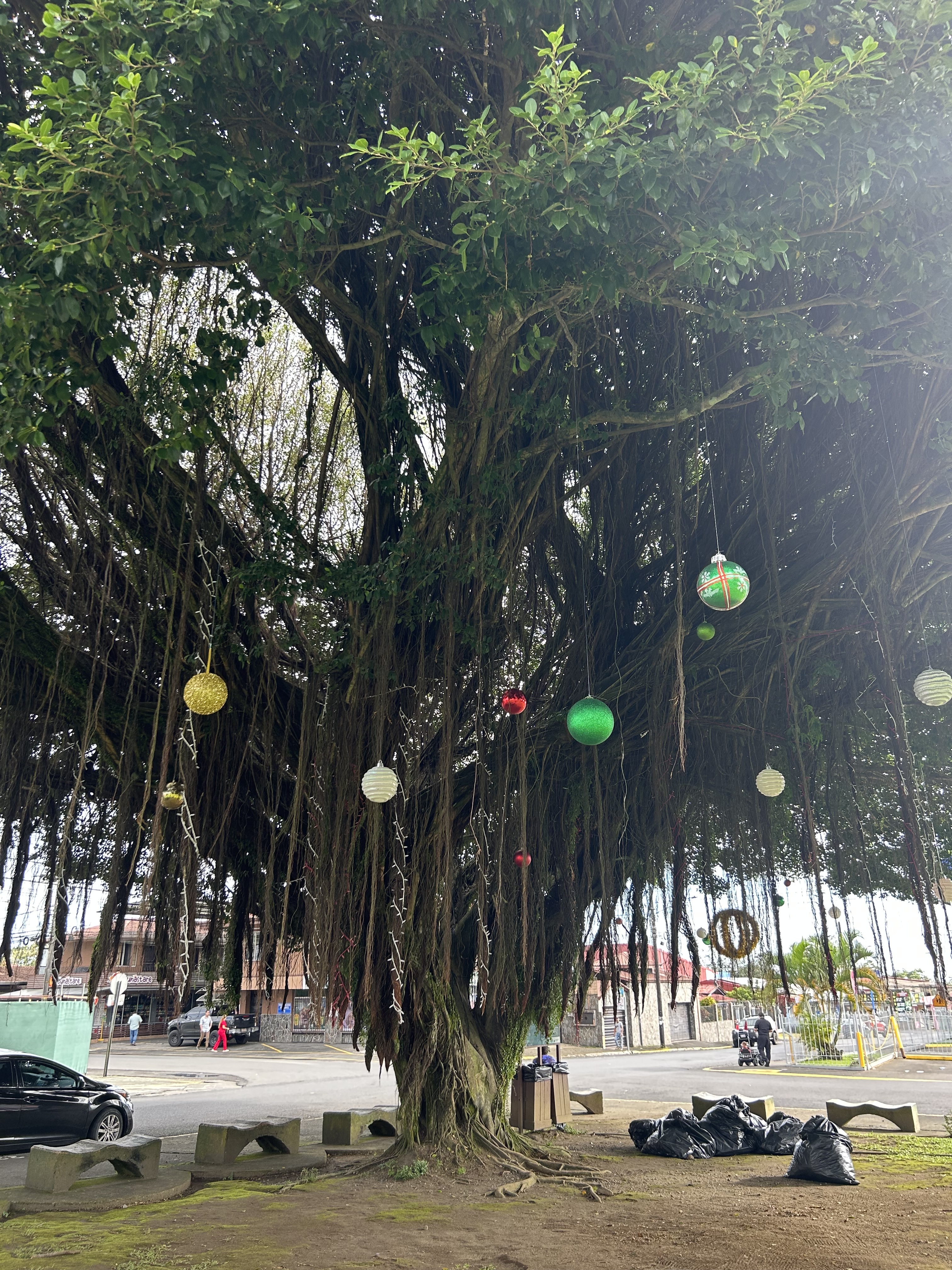 A Costa Rica run in an FL50 shirt, a Costa Rica version of a Christmas Tree, didn’t have a friend to run with but ran into a dog who wanted to be and couldn’t find a mailbox anywhere so i decided a garbage box was a good alternative because much of our mail is garbage these days