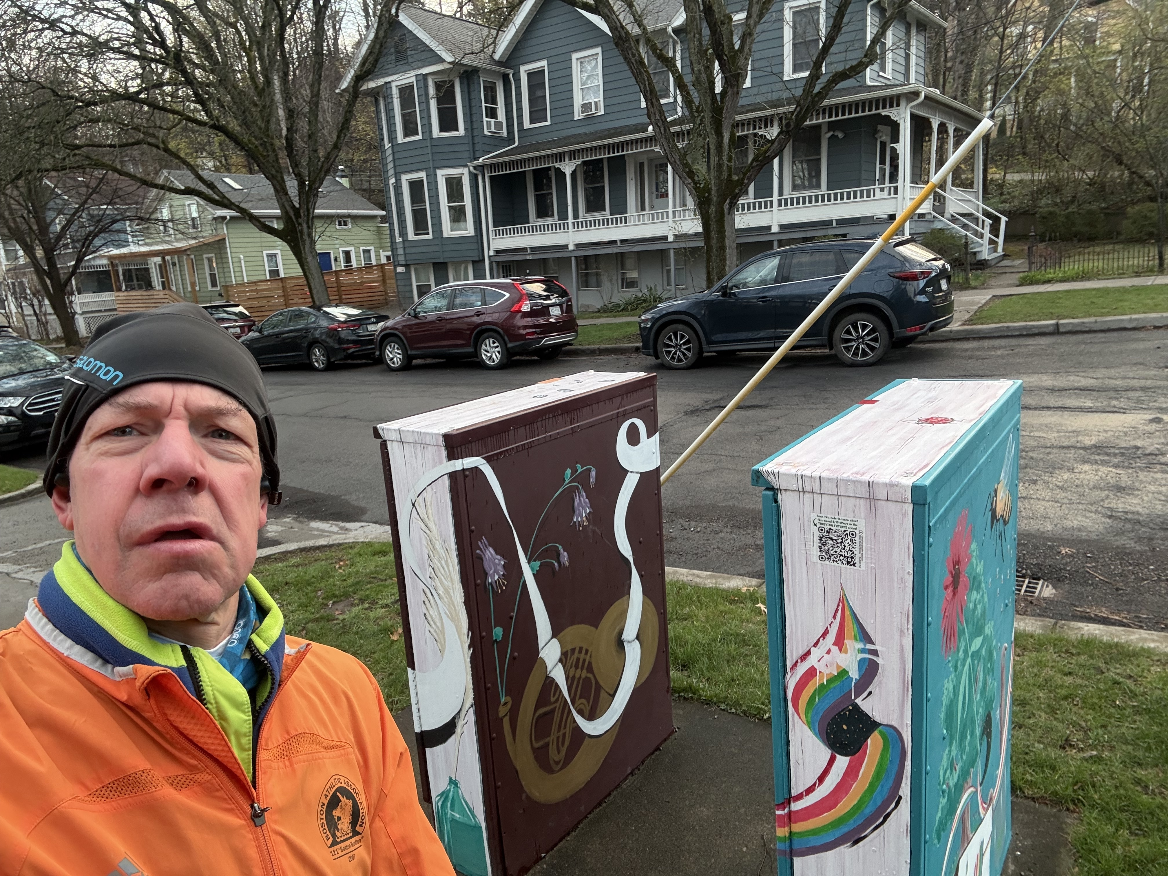 The inaugural Electrical Box Art Quest is happening this Saturday, April 11, at 8:00am, in Ithaca, NY. This event blends the fun of a (guided) scavenger hunt with the camaraderie and casual nature of a group run as you explore painted electrical boxes (and murals) around the city. The weather is looking favorable for early April—no rain and sunshine will make an appearance!